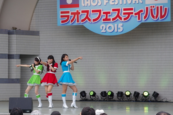 ステージでもいろんな人がライブをやってて、ぼくが会場にいたときは Cupitron って三人組が歌って踊ってました。ピコピコキラキラ。