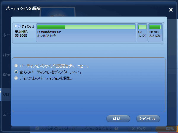 実際にクローンツールでクローンしてみたところ、1. と 2. はどちらも 35分かかった。23MB/s 位の速度だった。3. が 30分かかり 26MB/s くらいで、 4. が 25分で済み 32MB/s くらいだった。